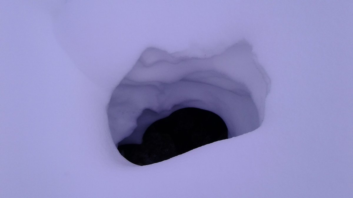 One of the dangers in limestone areas (Flaine is a good example of this) are crevasses that are poorly bridged - or in this case a hole has formed which leads down to the crack.