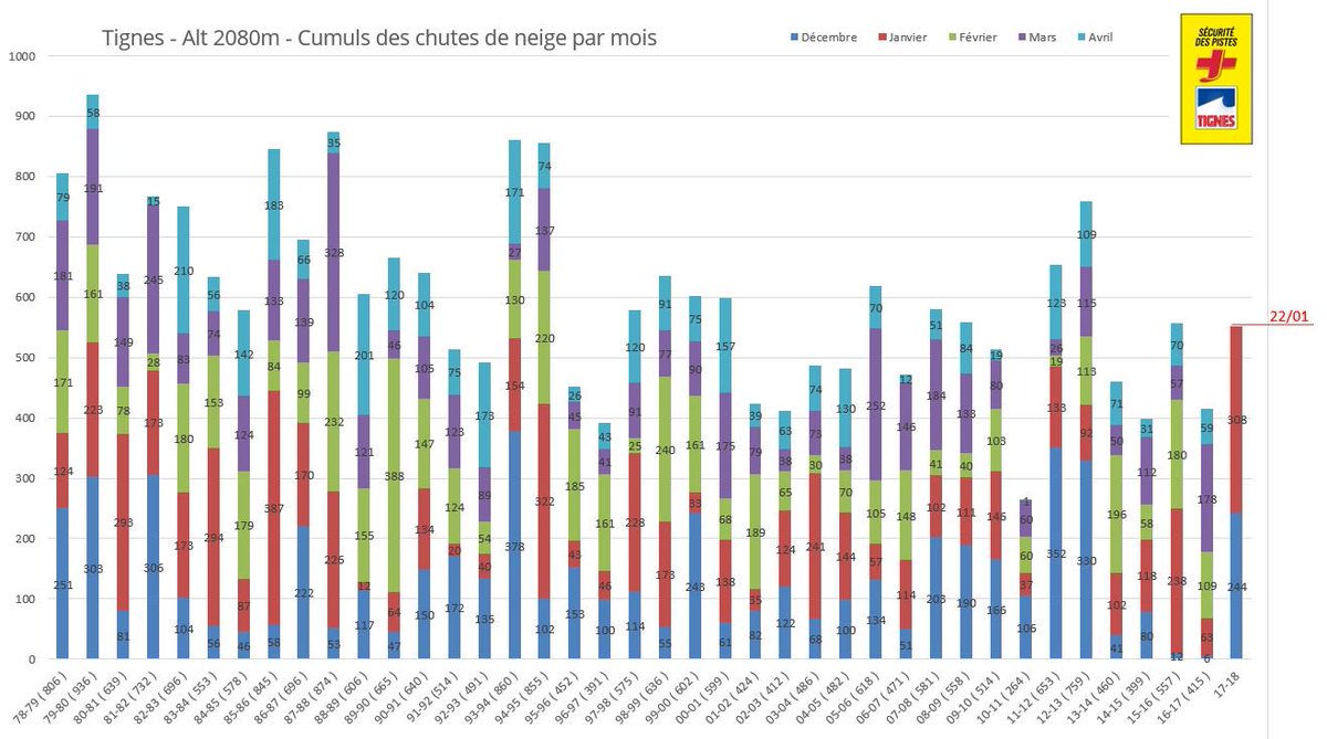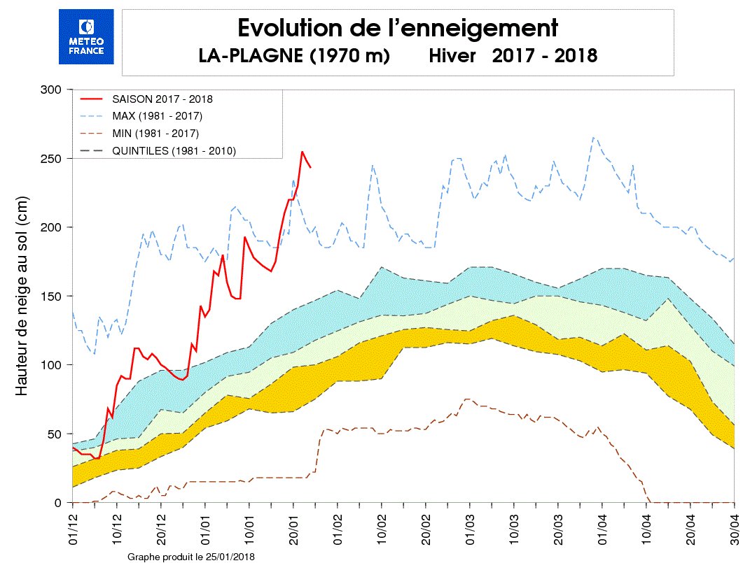 Which accounts for the limited snow and skiing at low altitudes (poor conditions below 1300 meters) and the high altitude rain. So despite the record quantities of snow in some areas at altitude we still have a trend to warmer, less snowy, winters; indeed they are probably two sides of the same climate change coin.