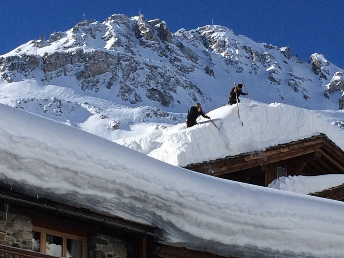 Clearing the roofs in Val d'Isere this AM before they collapse or avalanche