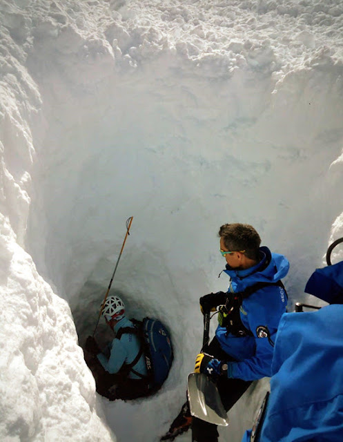 An idea of the burial depth of the Spanish skiers hit by a large avalanche in the Pyrenees on Friday ski touring: