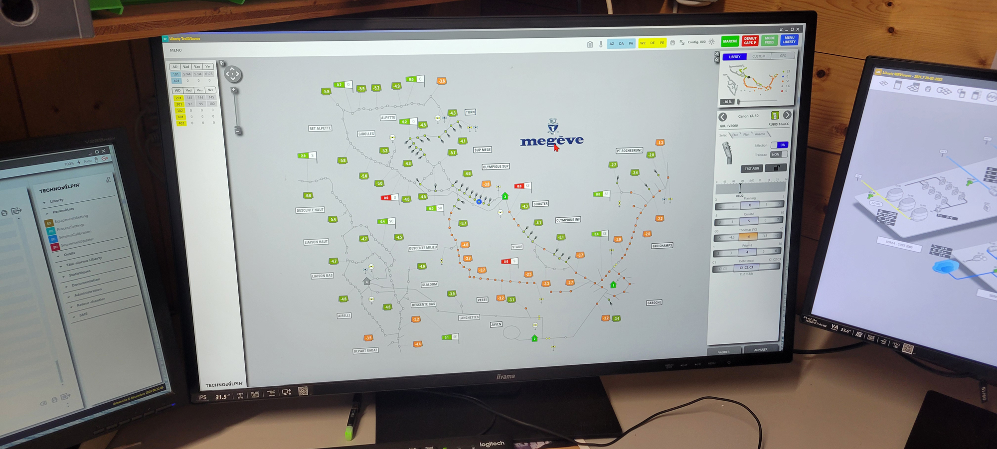 At Megeve Rochbrune last sunday I got a peek at the snowmakers control PC - here is a cheeky screenshot of what they were up to - trying to make as much snow as possible to open Olympic, A, Thurn and Arpette when asked.
