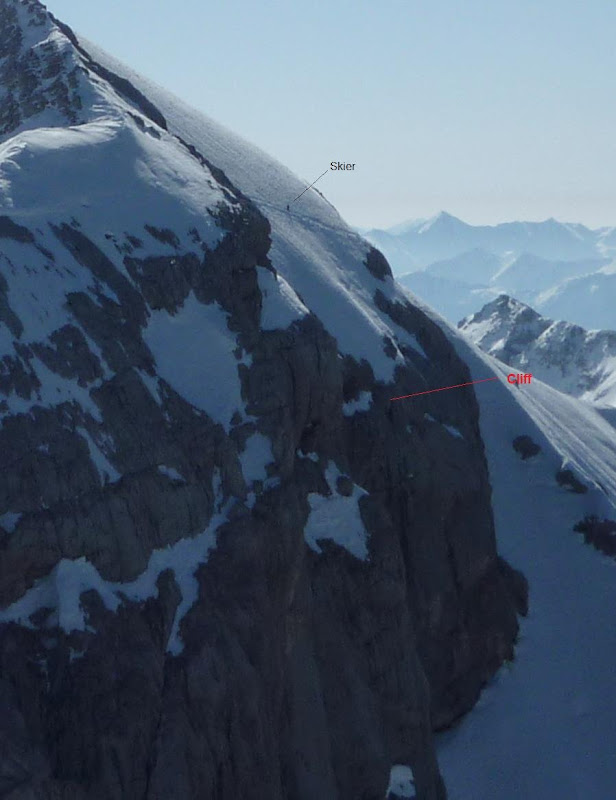 espri, down (left tp right). To get to the traverse requires climbing a series of ladders to a tunnel from the north face through to the south face. I think the traverse is cut out by ski patrol. Not done the run myself, the ladders put me off, the route down sounds pretty good so I think i'll end up doing next season.